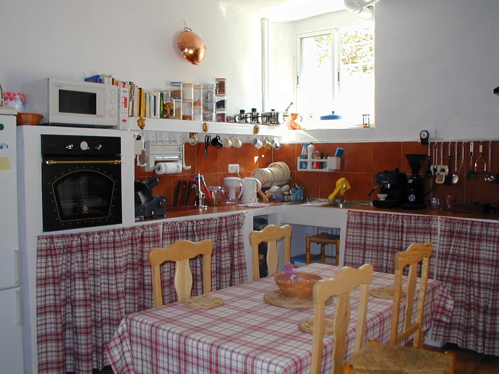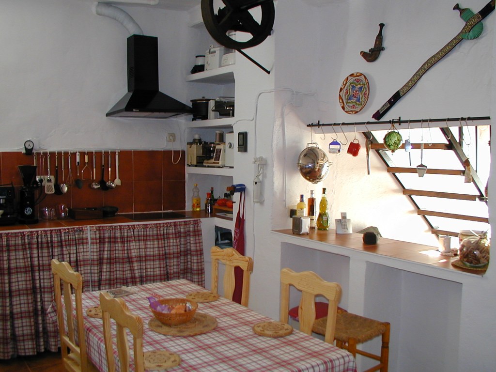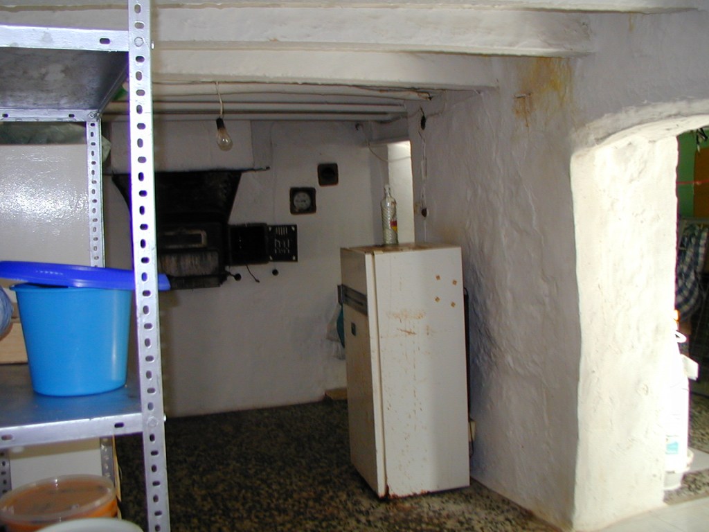 The cottage followed the standard Andalusian format of living-room with animals on the floor above. Extensions had been added at each end giving a bedroom at one end and kitchen plus dining / tv room at the other end. There was no bathroom in spite of a large family having lived there for over fifty years. Originally a trough outside was filled with water, then mains water and electricity arrived. Going back years a stream fed into a mill pond at the rear of the cottage, this powered the water wheel down below in the mill itself, when they wanted to mill, a sluice gate was opened allowing water to flow down to the water wheel. The steam ceased to exist and mill was powered at first by a Petter diesel, then by 400v three phase electricity. There were two supply 400v for the mill and 220v for the house. A water butt provided water for the kitchen this was topped up each day by a hose. One of the first things I did was to put a ball cock on the supply.