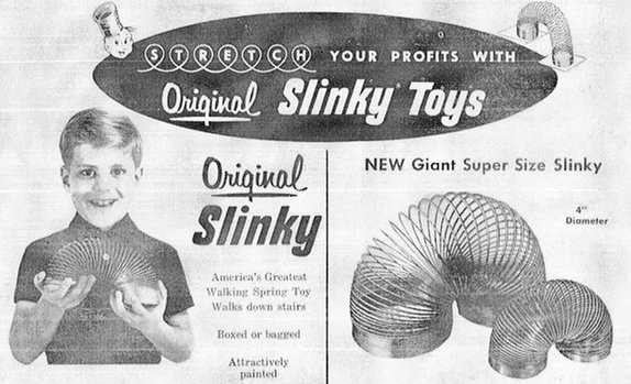 1951 Festival of Britain, with the Skylon and Dome of Discovery, my Father and sister went, They brought me back a Slinky.